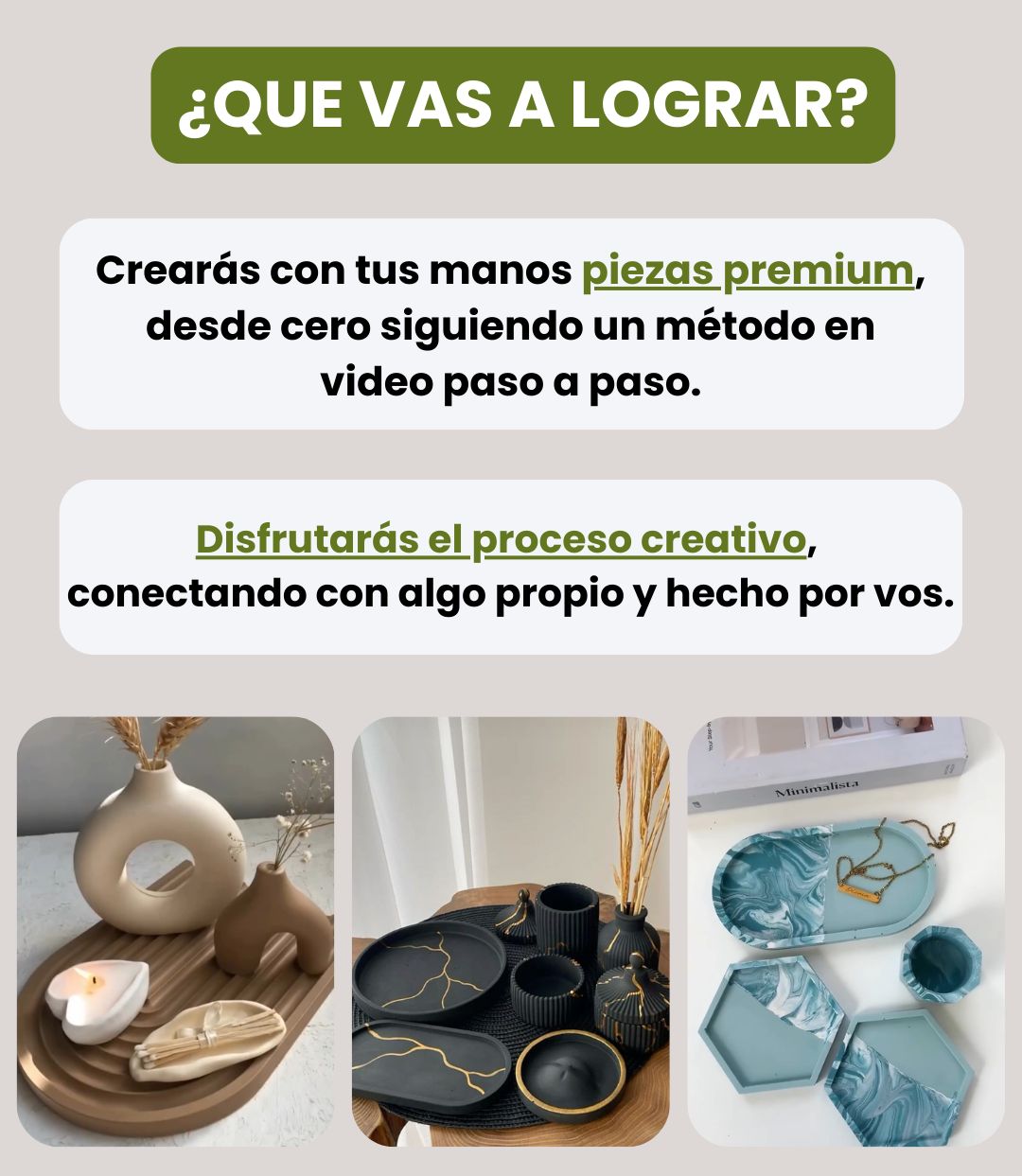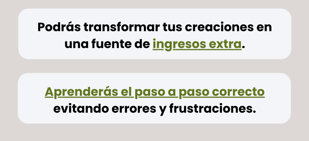 Aprendés a crear piezas que se venden, a calcular costos, embalar y presentar tus productos. Muchas personas comienzan como ingreso extra y luego lo convierten en un emprendimiento.